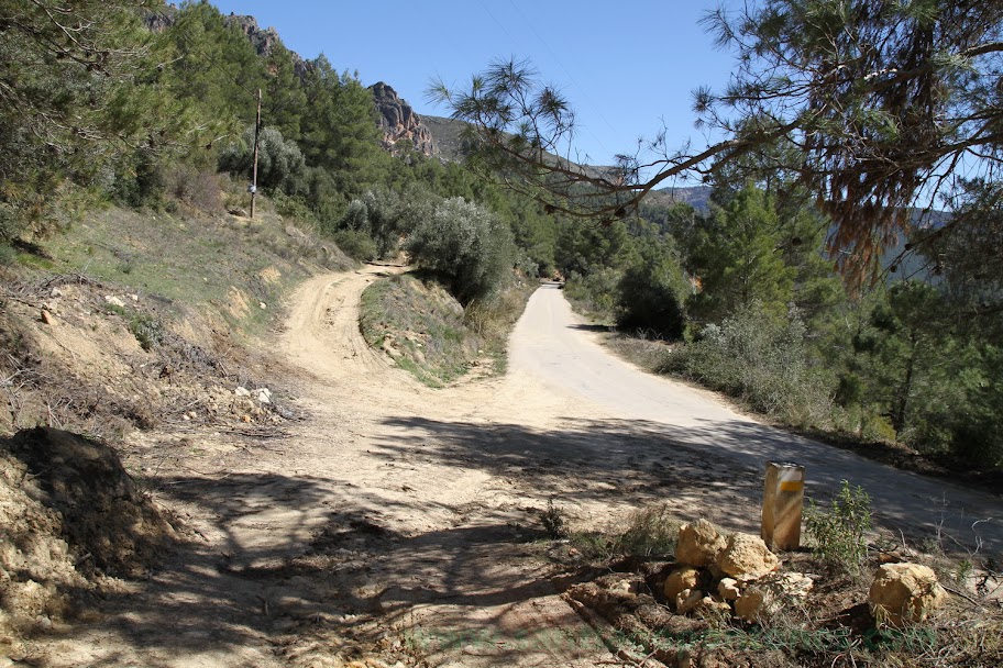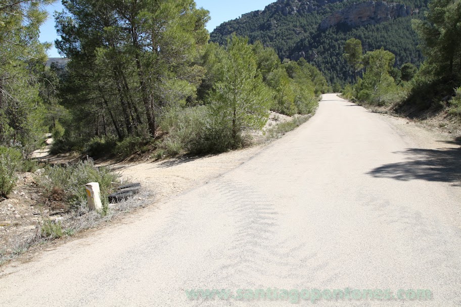 A partir de este punto hasta la Peguera del Madroño lo haremos por una pista forestal que bajo el calar nos llevará sobre la aldea , la que podremos atravesar o seguir por el carril sobre la misma hasta llegar a la carretera asfaltada .